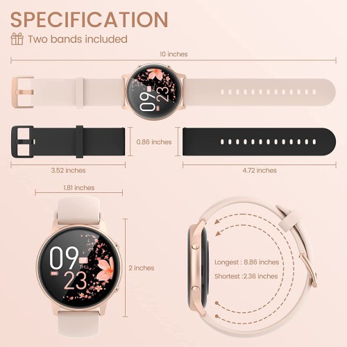 Smart Watches for Women, 2021 HD LCD Smart Watch for Android Phones and iPhone Compatible, 3ATM Waterproof Fitness Smartwatch with Sleep Tracker, Heart Rate, Blood Oxygen Monitor, Smartwatch Rose Gold